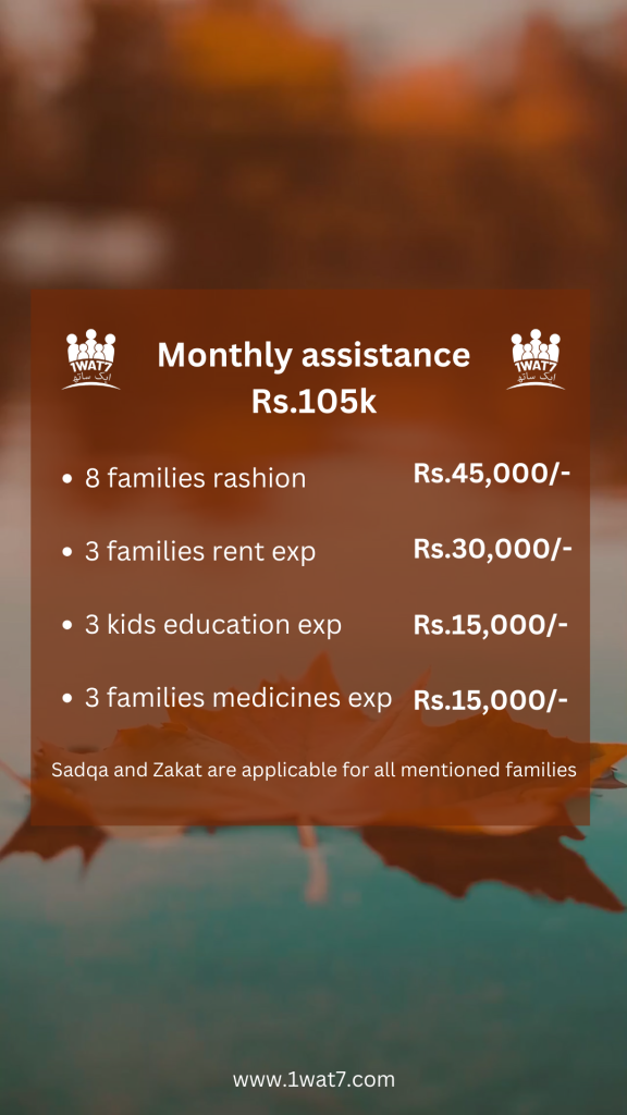 Purpose: Monthly Assistance – Amount required: Rs 105,000/-